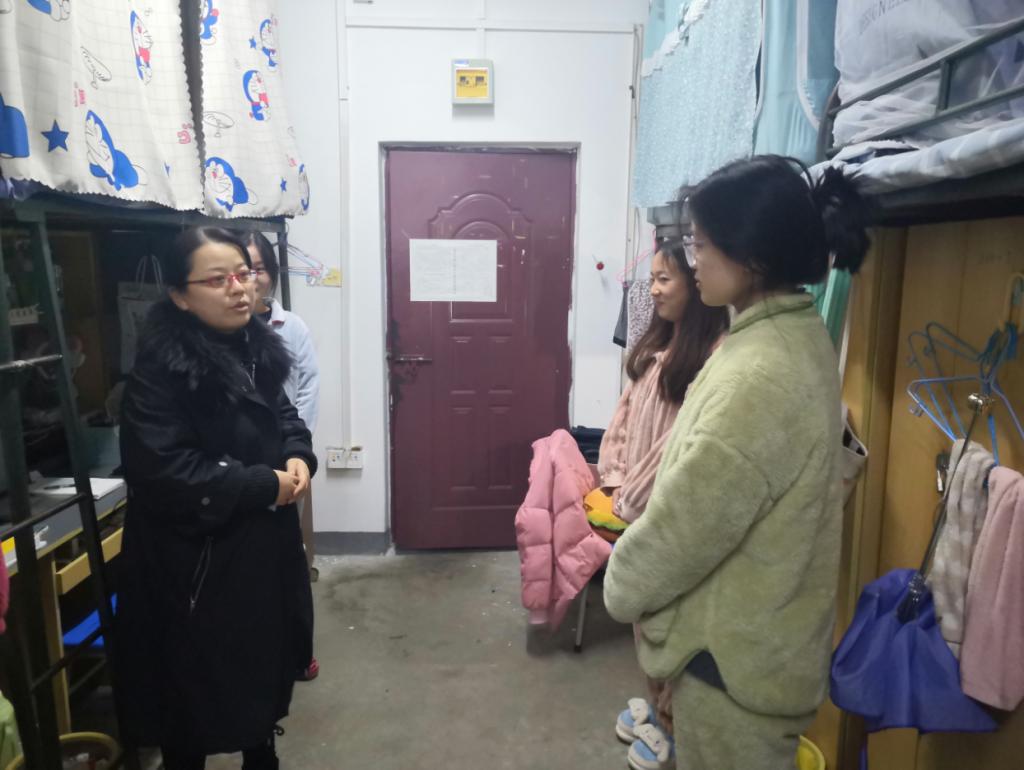 12月1日,法公司党委副书记钱敏带领辅导员一行深入员工宿舍开展走访调研和安全卫生检查,了解员工思想生活状况,宣传讲解疫情防控有关规定,教育引导员工遵守公司教育管理规定,切实维护校园安全稳定。