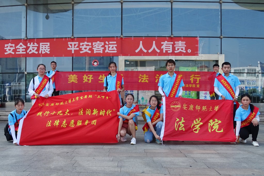 7月21日,tyc122ccVIP“践行十九大 法润新时代”法律志愿服务队来到安庆汽车站和高铁站附近,开展“以案说法”活动,宣传讲解毒品类犯罪知识。