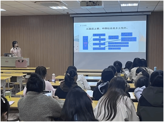 在交流分享环节,老师们选取具有代表性的书评进行点评。李元来以2021级社会工作专业仵瑶瑶的书评为例,点出她书评的优点和改进之处。张弛表扬了2021级社会工作专业芮雨晴和曹越两位同学,指出她们是在认真阅读基础上,选取《乡土中国》的某个感受最为深刻的概念,并结合自身的经验体会进行分享。