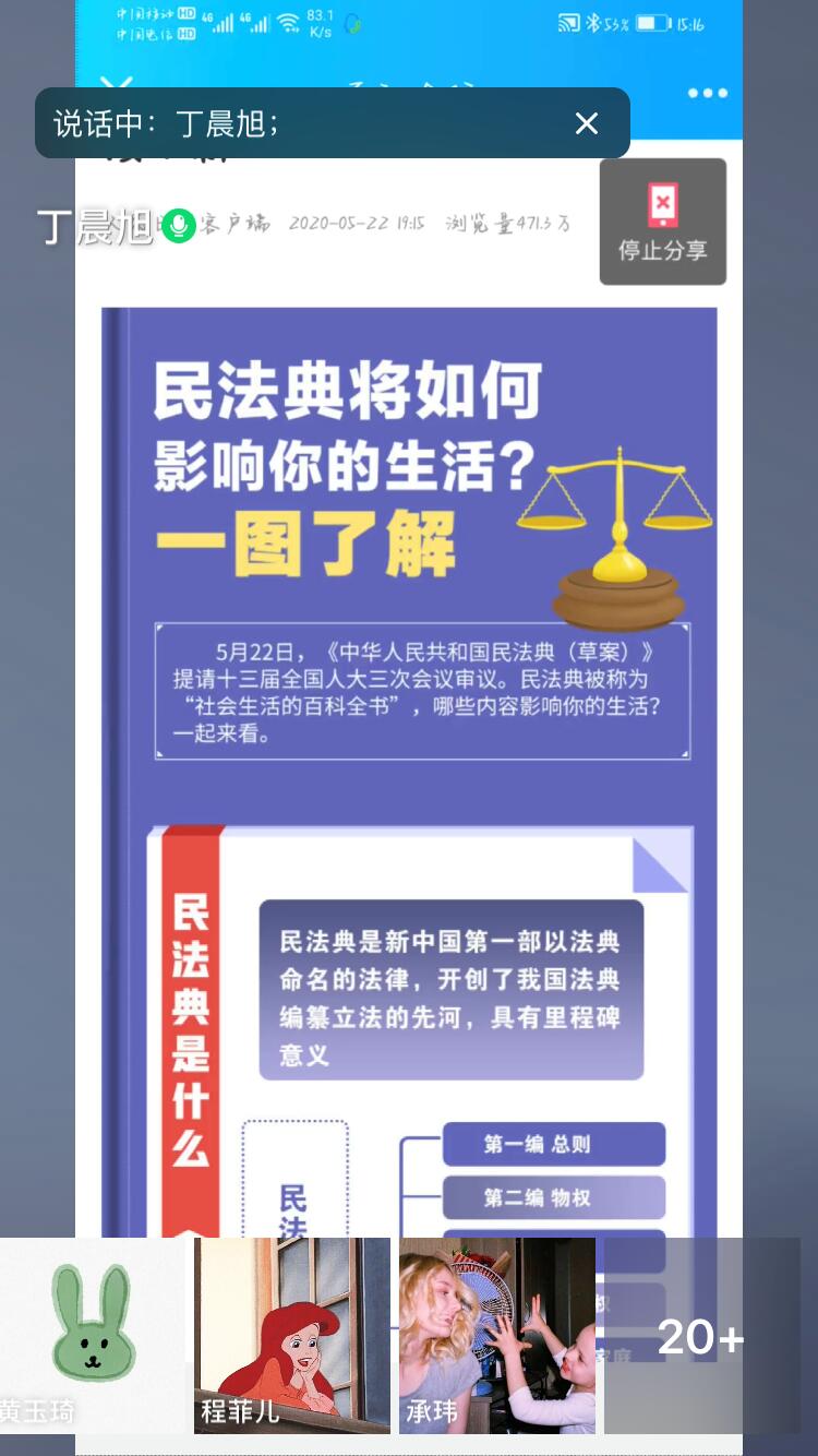 为深入了解国情于时代发展脉搏, 6月26日下午,2019级法学1班团支部采用线上方式开展“关注时代焦点 学习盛世法典”团日活动。辅导员从光梅老师、辅导员助理及全班48名同学参加了此次活动。