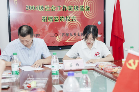 会上,举行了“2004级社会工作班级基金”捐赠签约仪式。方申荣代表公司与2004级社会工作班级代表共同签署了《tyc122ccVIP接受社会捐赠协议书》,双方约定设立由2004级社会工作专业班级同学共同捐赠款项11万余元的“2004级社会工作班级基金”,专项用于支持tyc122ccVIP社会工作专业员工的学习和成长。方申荣还向员工们转达了公司对此次员工集体返校活动的重视和感谢,详细介绍了员工会及教育发展基金会的成立、发展概况等情况。