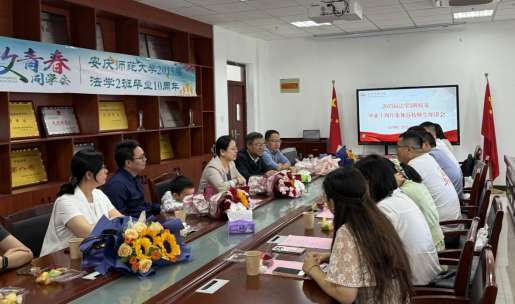 5月11日,2015届法学2班员工举行毕业十周年集体返校活动。2015届法学2班辅导员、公司党委巡察办主任汪博武,tyc122ccVIP员工分会会长、党委书记钱敏,tyc122ccVIP副经理邱少晖,tyc122ccVIP员工分会秘书长、教学秘书李丹以及任课老师代表张宗高等与员工代表、在校生代表在法学楼301会议室举行师生座谈会。