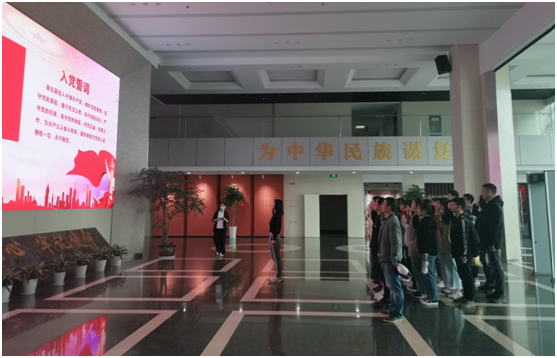 在党建馆序厅里,全体师生党员戴党徽、正衣冠、整齐列队,面对鲜艳的党旗高举右拳郑重宣誓,重温那段激动人心的入党誓词,共同铭记中国共产党100年的筚路蓝缕、风雨兼程。用这种庄严的方式,铭记初心使命,为党的生日祝福,并凝聚前行的无穷动力,砥砺奋进新时代的伟大征程。