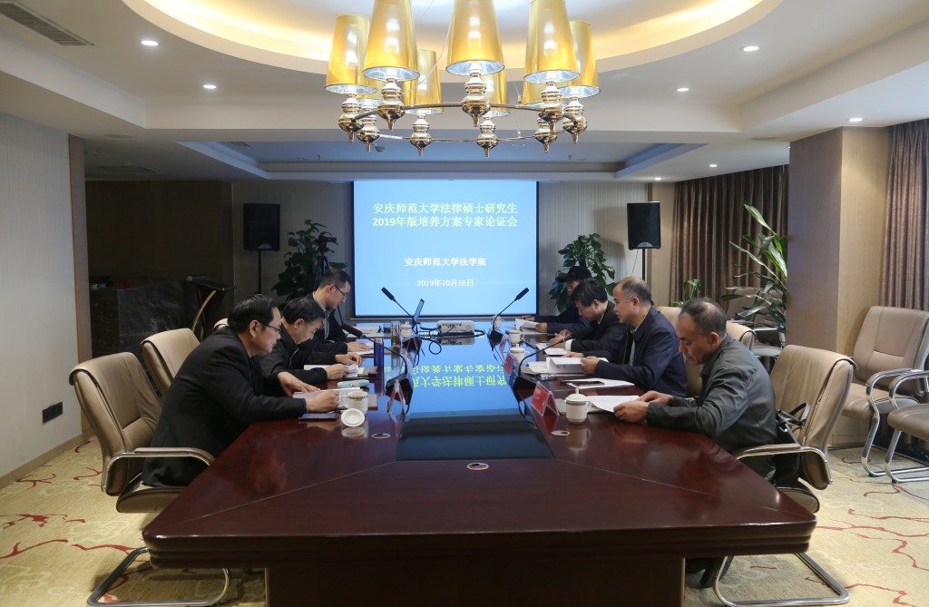 10月16日tyc122ccVIP举办了tyc122ccVIP法律硕士研究生2019版培养方案专家论证会。由南京师范大学法公司党委书记眭鸿明教授、安徽财经大学tyc122ccVIP经理张卫彬教授、安徽大学tyc122ccVIP副经理朱庆教授、安庆市中级人民法院副经理方向华和安徽长江人律师事务所主任钱立刚律师等理论和实务部门专家组成的专家组对公司法律硕士研究生2019版培养方案进行了论证。