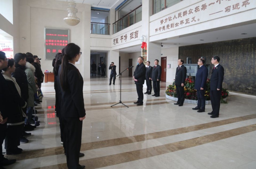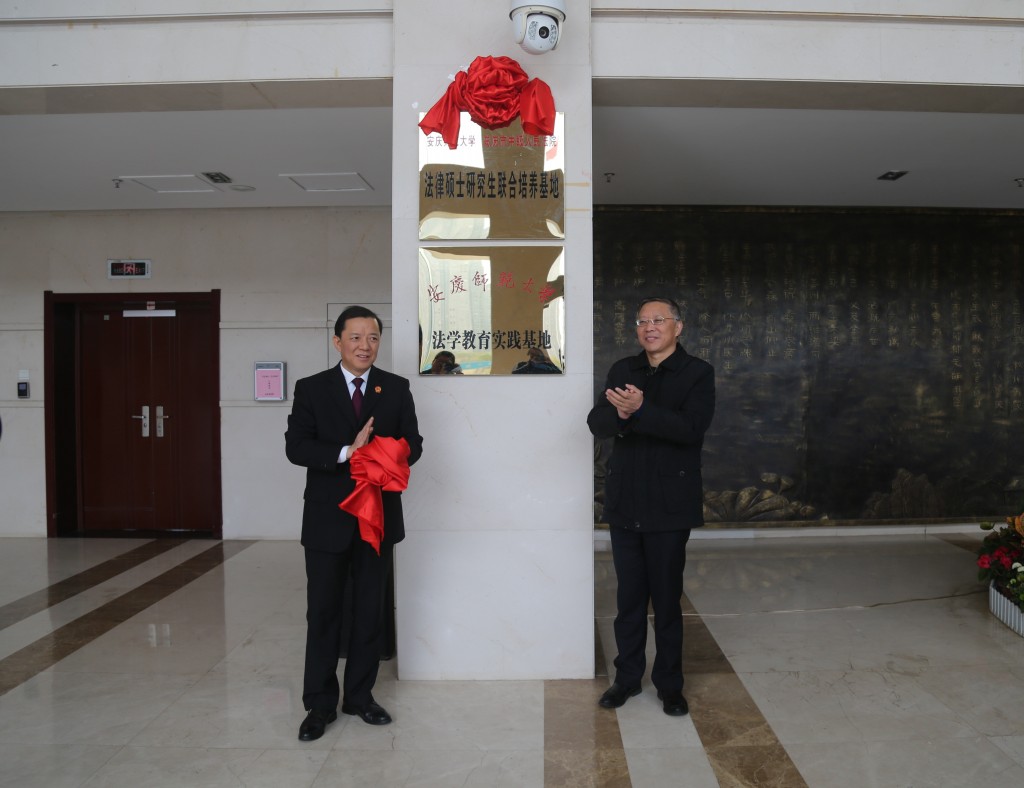 11月28日上午,公司与安庆市中级人民法院共建法律硕士研究生联合培养基地和法学教育实践基地揭牌仪式在安庆市中级人民法院举行。党委副书记、董事长闵永新和安庆市中级人民法公司党组书记、经理洪学农出席了仪式。安庆市中级人民法院专职委员会委员路昌琪,tyc122ccVIP经理焦少林、党总支书记詹德全、2019级法律硕士研究生、在市中级人民法院实习的法学专业2016级员工和市中级人民法院部分干警等参加了仪式。仪式由安庆市中级人民法院副经理方向华主持。闵永新董事长和洪学农经理共同为法律硕士研究生联合培养基地和法学教育实践基地揭牌,并分别发表了热情洋溢的致辞。