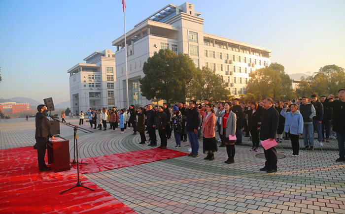 “我宣誓:忠于中华人民共和国宪法,维护宪法权威,履行法定义务,忠于祖国、忠于人民,为建设富强民主文明和谐美丽的社会主义现代化强国努力奋斗!”在汪时珍的带领下,在场的老师和员工们一齐举起右拳,郑重宣誓。