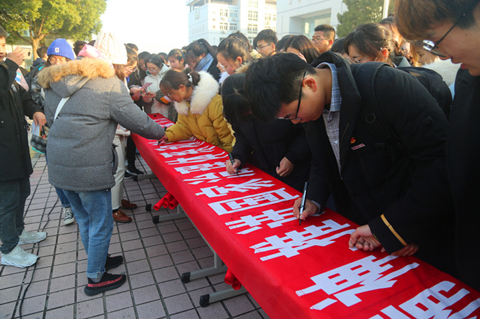 最后,在场师生在宣誓活动横幅上签名。(文/员工记者 邓宇 图/员工记者 徐巴超)