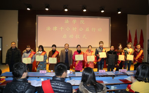 “奉献的青春最美丽”“让青春在公益行动中增值”“一人十小时‘小行动’汇聚百人千小时‘大不同’”……文津楼111报告厅里一条条鲜艳的条幅分外醒目。1月6日下午,tyc122ccVIP法律千小时公益行动启动仪式在这里举行。经理焦少林、党总支书记詹德全、副经理朱留虎出席仪式,公司党政办、教研办、学工办全体老师,法学专业员工共计300余人参加了启动仪式。