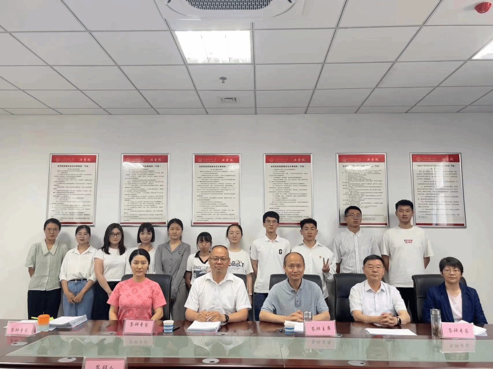 答辩会主要分为答辩人报告论文主要内容、答辩委员会委员提问、答辩人回答问题、休会评议四个环节。答辩过程中,答辩人报告了毕业论文框架、内容和创新点,答辩专家围绕毕业论文提出相关问题,答辩人针对提问逐一作答。答辩委员会委员还从论文选题、论证逻辑、参考文献等方面对论文存在的不足提出宝贵修改意见。答辩结束后经答辩委员会评议,同意21名硕士研究生通过硕士学位论文答辩。