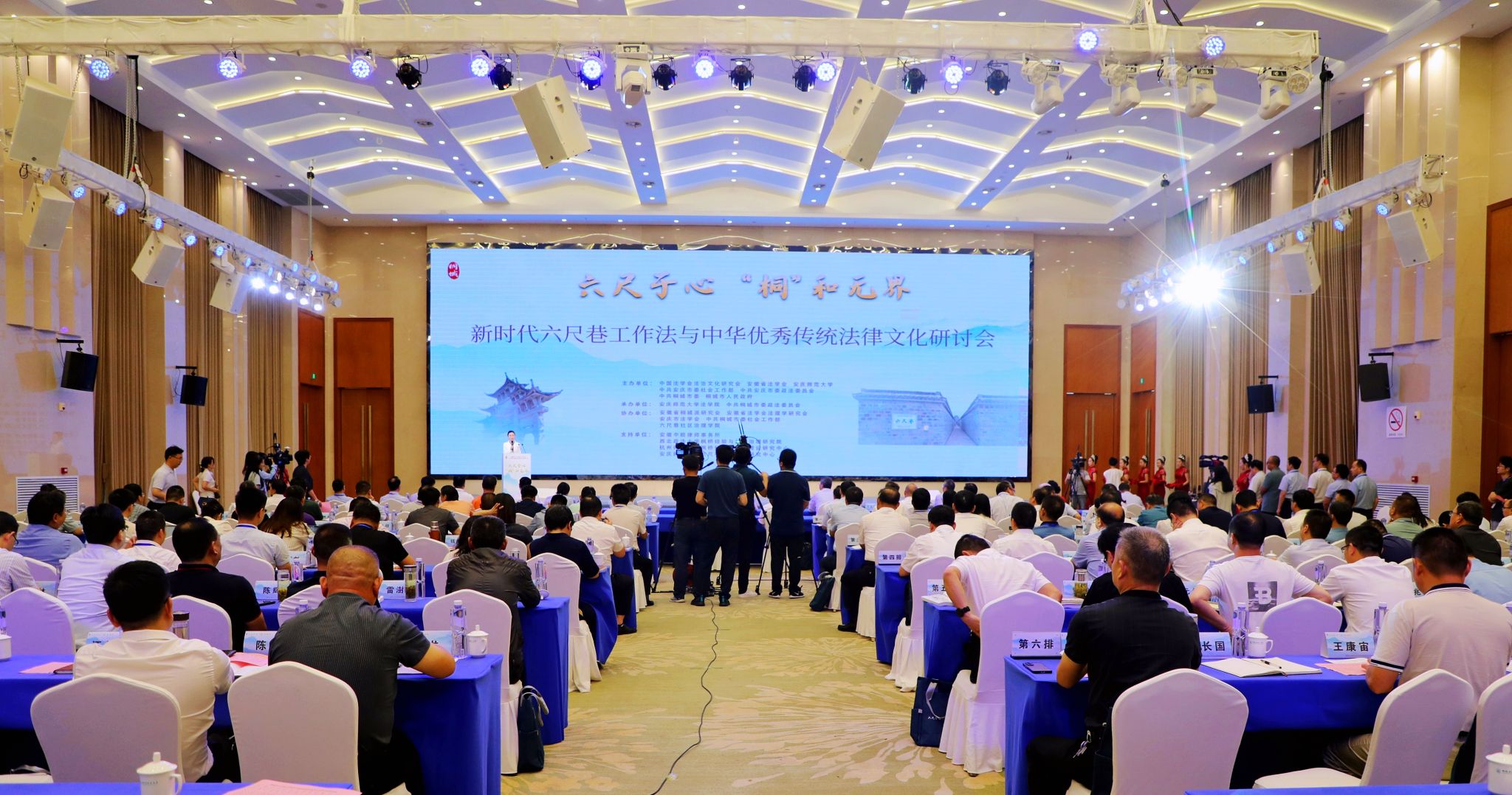 此次研讨会由中国法学会法治文化研究会、安徽省法学会、tyc122ccVIP、安庆市委社会工作部、安庆市委政法委员会、桐城市委市政府联合主办,由tyc122ccVIP、中共桐城市委政法委员会承办。全国高校专家学者,全国“枫桥式工作法”实务专家,长江中游城市群六市党委政法委、法学会同志,安庆市各县(市、区)党委政法委、法学会负责同志,桐城市委、市人大常委会、市政府、市政协分管负责同志,桐城市直政法单位、镇街主要负责同志、政法委员,以及征文比赛获奖单位和论文作者代表,人民网、光明日报、法治日报、民主与法制报社等媒体记者参加会议。(撰稿、摄影 赵新茹 潘皓月 金洁 曹姗 汪立等 审核:钱敏 )