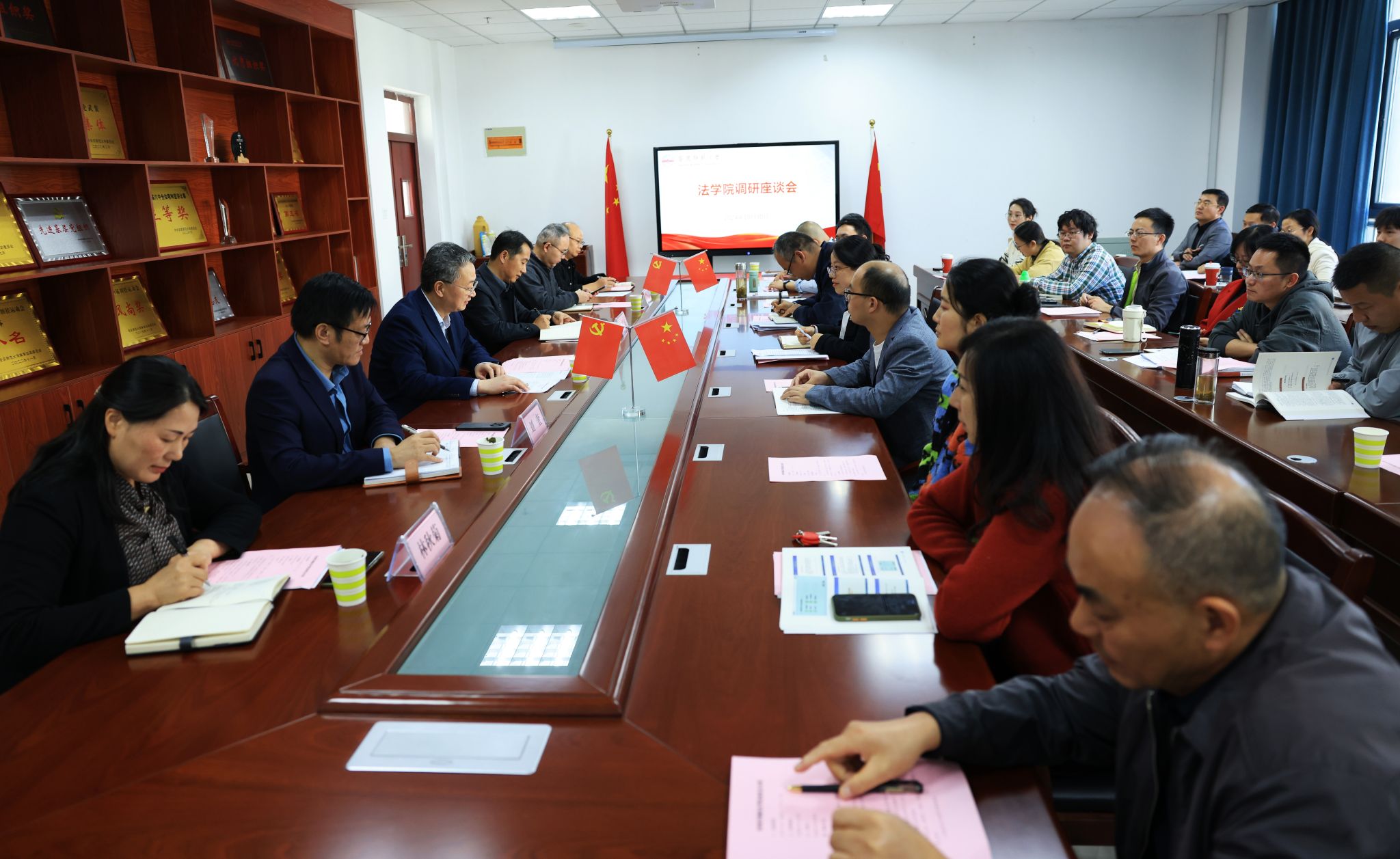 10月30日,公司党委书记李福华一行赴tyc122ccVIP调研指导工作,公司党委常委张红飞陪同调研。组织部、人事处、教务处、科研处等单位负责人及法公司党政班子成员、支部书记、教研室主任、六尺巷和解文化研究中心人员、tyc122ccVIP各办公室责任人等教师代表参加调研座谈。