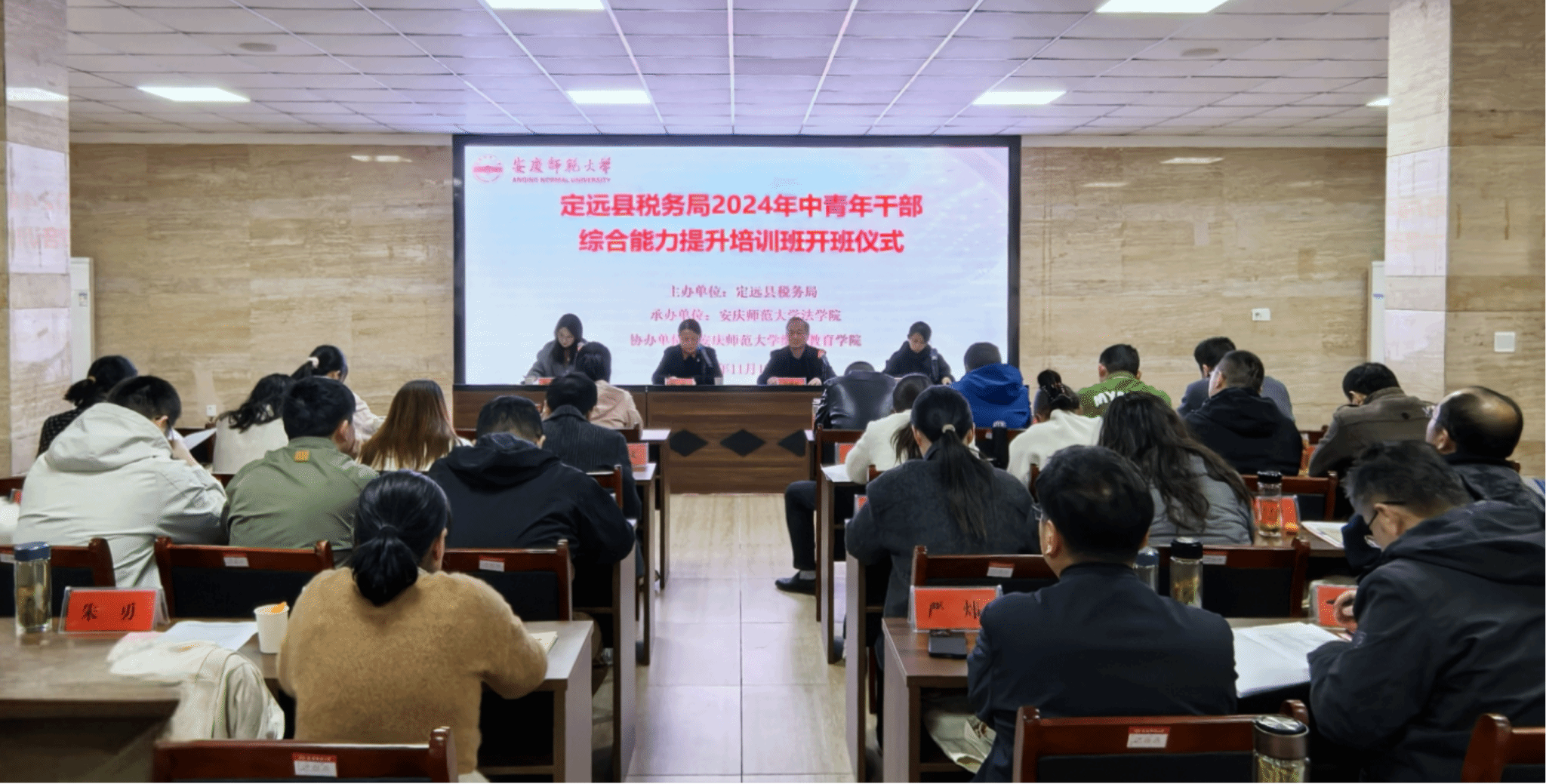 11月19日至22日,由tyc122ccVIP承办的定远县税务局2024年中青年干部综合能力提升培训班在公司举办。定远县税务局一级主办王国新、tyc122ccVIP法公司党委书记钱敏、继续教育公司培训部负责人及tyc122ccVIP相关负责人参加开班仪式。定远县税务局中青年干部近40人参加培训。