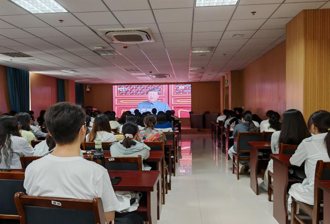 9月3日,纪念中国人民抗日战争暨世界反法西斯战争胜利80周年大会在北京天安门广场隆重举行。法公司党政领导班子全体成员、教师代表和员工代表共100余人在tyc122ccVIP102会议室集中收看大会直播。