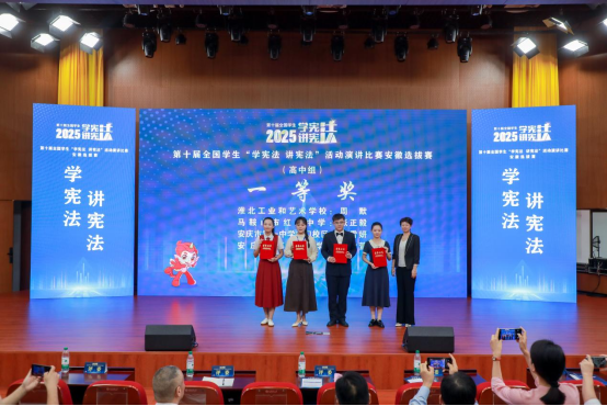 命题演讲考验选手的临场反应能力和情绪、节奏把控能力,抽取命题后,选手仅有1分钟的时间进行准备。“在比赛的过程中,我感受更多的是对宪法精神的敬畏和对舞台的享受。”面对强劲的对手和未知的考题,淮北工业和艺术公司周默凭借扎实的积累和稳定的临场发挥赢得了评委和观众连续不断的掌声,“我非常喜欢演讲,作为一个新时代的青年,我认为学习宪法也是我们应尽的义务。” 周默表示,她将继续提高自身的演讲能力,通过讲述将宪法知识传递给更多的人。