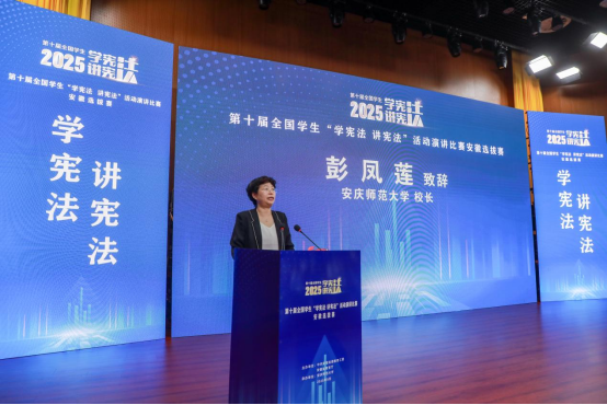 彭凤莲代表公司致辞。她简要介绍了公司的办学历史,特别是法学教育的传承。她指出,贯彻宪法精神、推进依法治校是落实立德树人根本任务的重要保障。公司以大学章程为核心,完善现代大学制度体系,将法治精神融入公司产品、科研和管理服务各环节。她表示,公司将继续推进校园宪法宣传,营造浓厚的校园法治文化氛围,让尊法、学法、守法、用法成为全校师生的自觉行动。