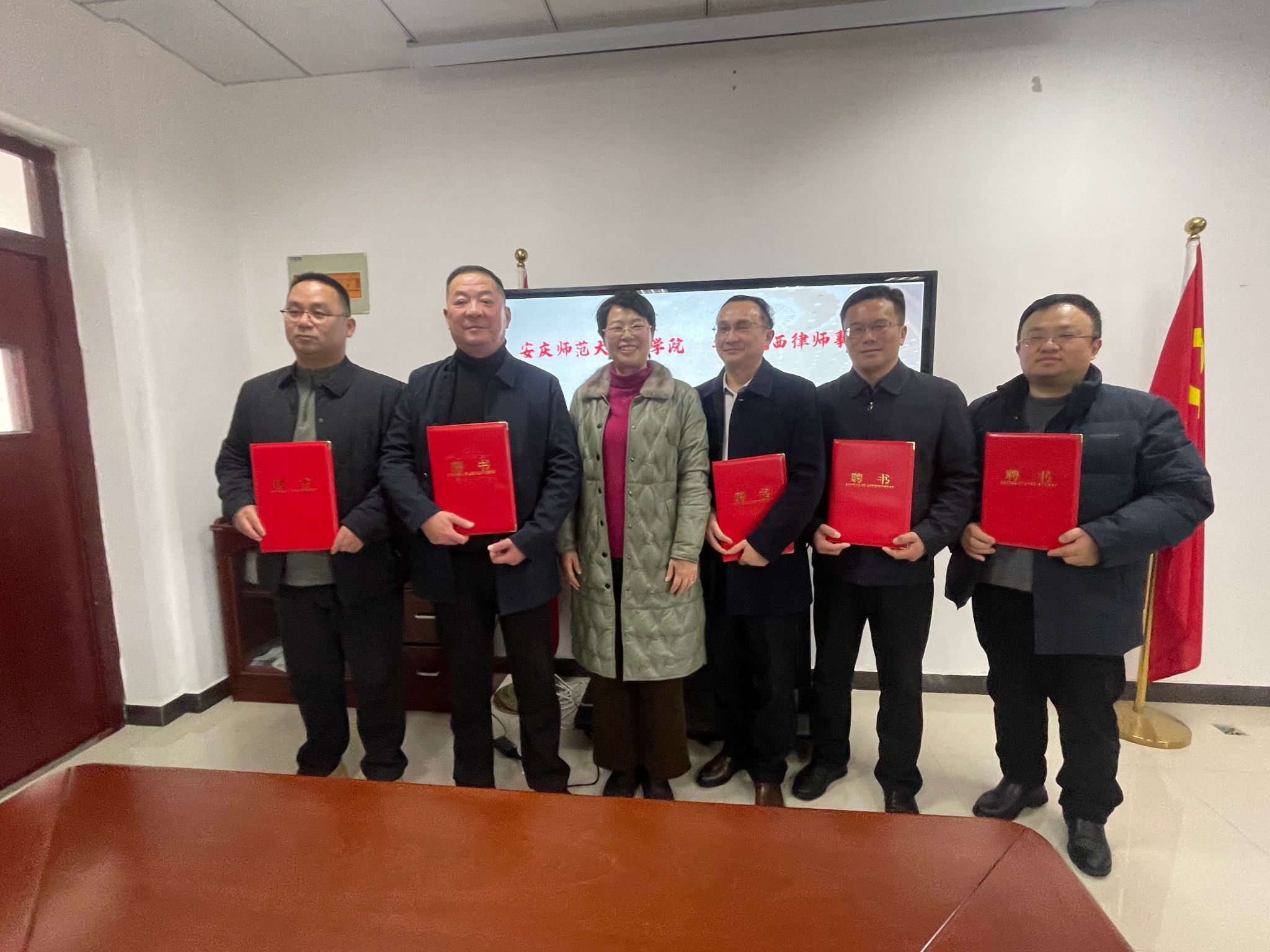 会上举行签约、捐赠及聘任仪式。王开友代表tyc122ccVIP教育发展基金会与刘中权主任签订捐赠协议,安徽皖西律师事务所向公司捐赠人民币10万元,专项用于支持tyc122ccVIP人才培养和员工工作。tyc122ccVIP与律所还签订了毕业生就业基地、实践教学基地共建协议,并聘任刘中权、余陈等5位律师为tyc122ccVIP客座教授。