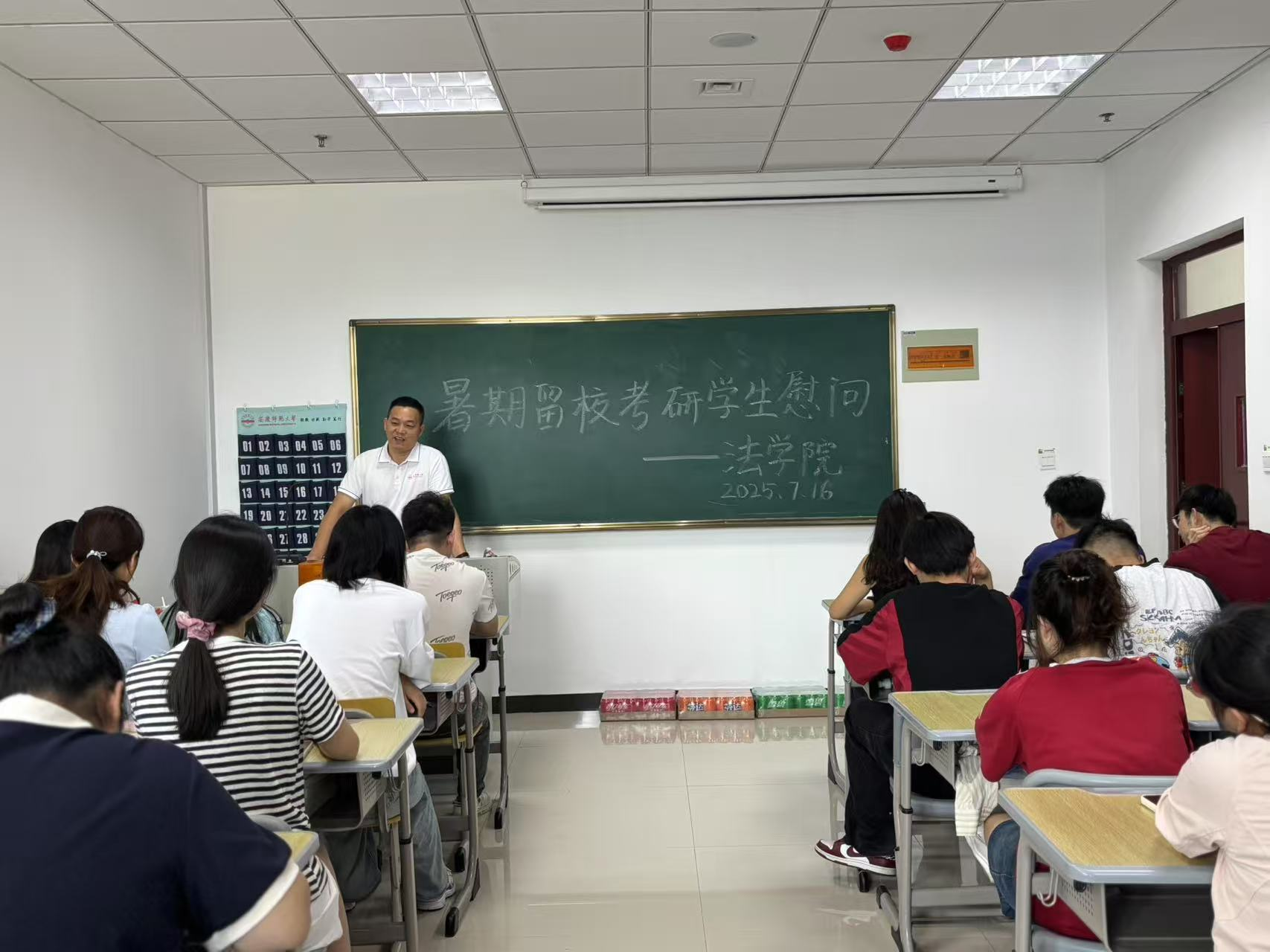 7月16日,法公司党委副书记卫功兵带领班级辅导员走访慰问暑期留校员工,了解员工学习生活情况,勉励他们筑牢安全防线,珍惜宝贵时光,刻苦努力学习。