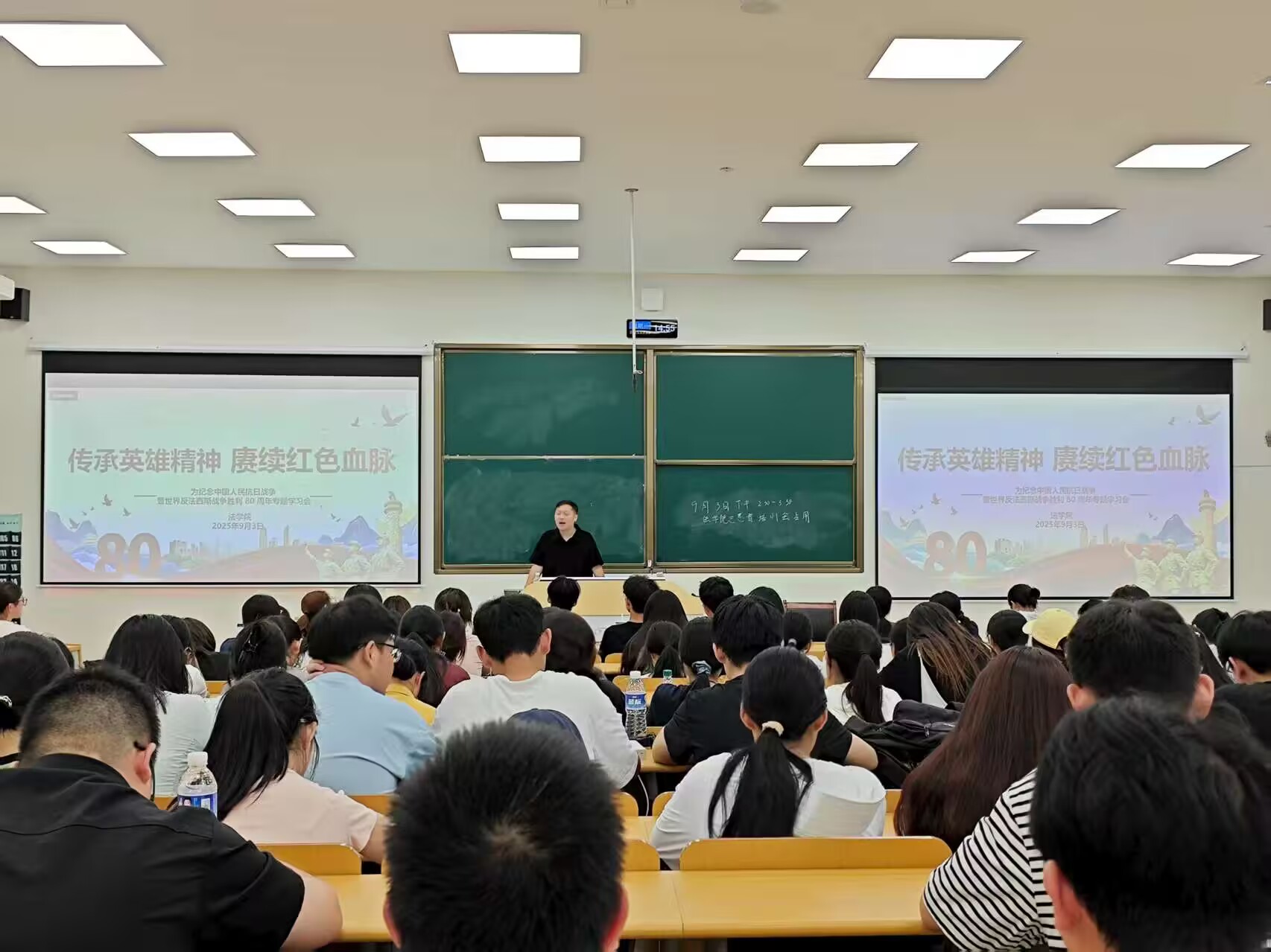 9月3日,tyc122ccVIP在教学楼C108教室开展纪念中国人民抗日战争暨世界反法西斯战争胜利80周年专题宣讲会。