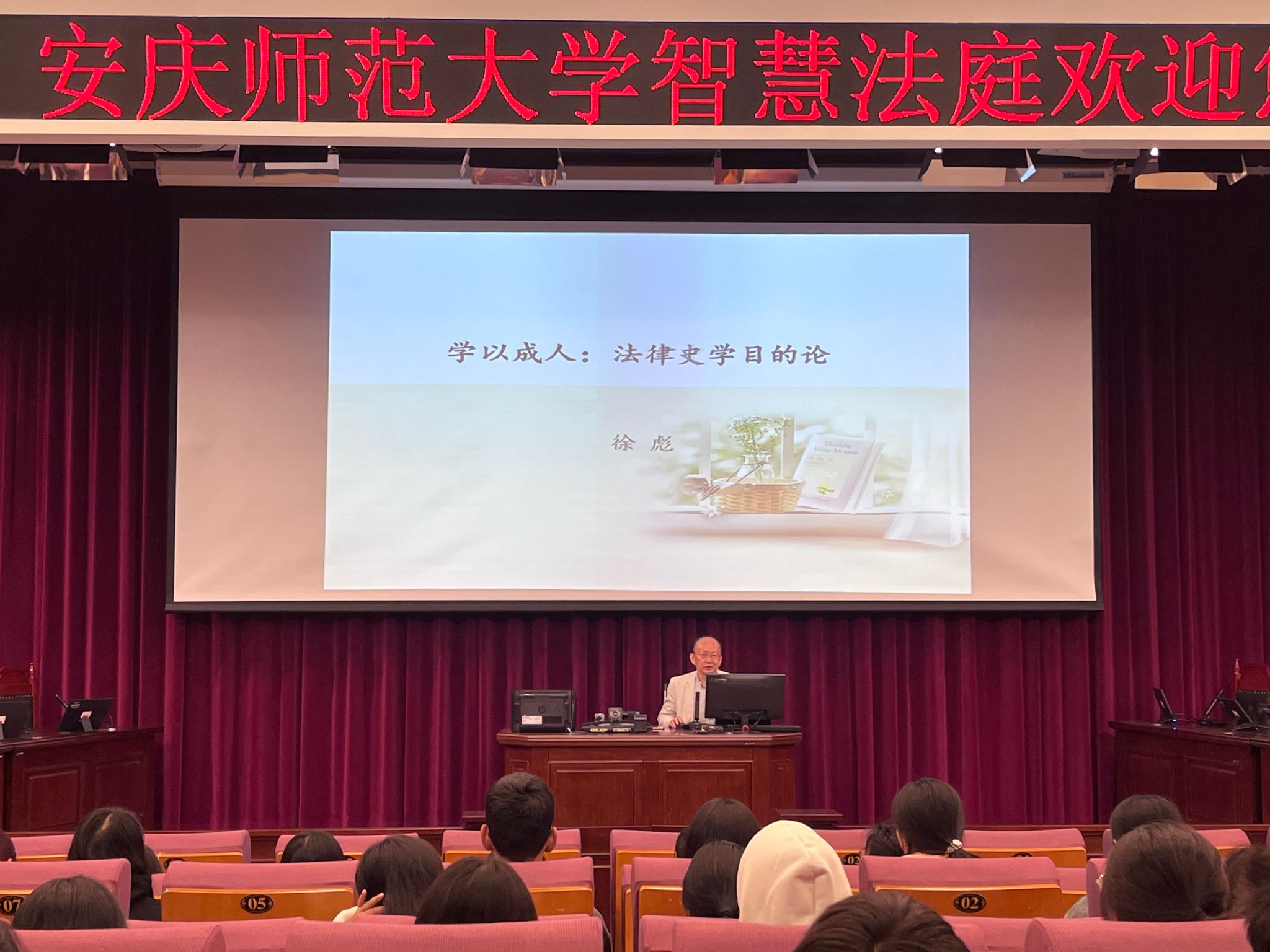 11月5日上午,安徽大学tyc122ccVIP徐彪教授应邀在模拟法庭作题为“学以成人:法律史学目的论”的学术报告,报告会由tyc122ccVIP副经理崔汪卫主持,tyc122ccVIP100余名本科生和部分研究生聆听报告。