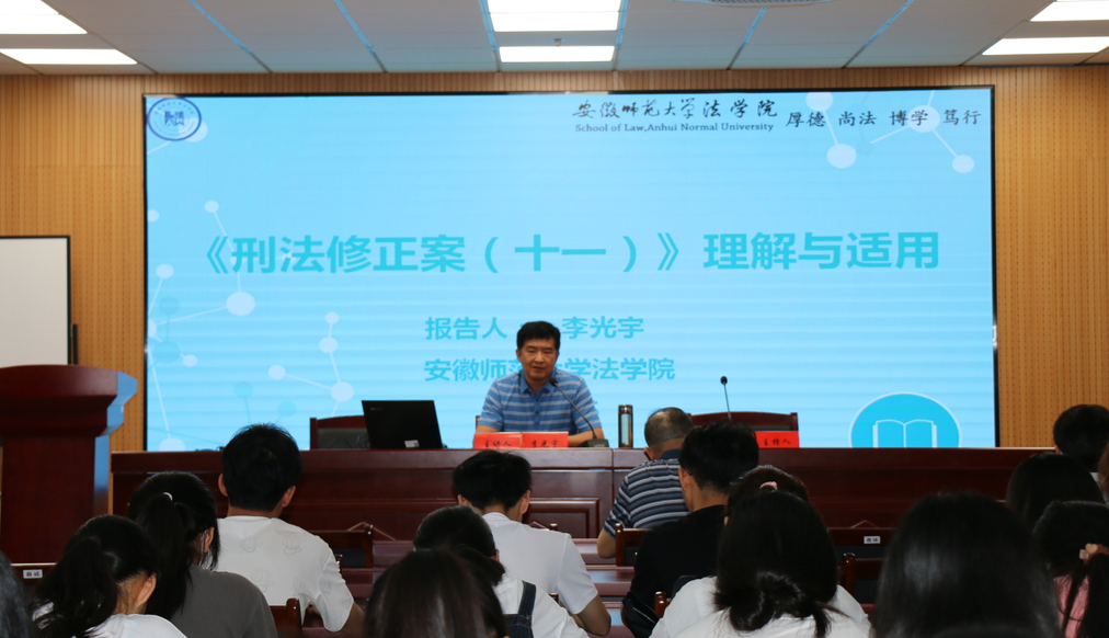李光宇教授在报告中结合《刑法修正案(十一)》的时代背景阐述了《刑法修正案(十一)》颁布流程,他指出,修改刑法是落实党中央决策部署要求、适应社会现实新情况、实现对司法热点关切的重要体现。李教授结合相关案例,具体分析了《刑法修正案(十一)》的价值导向和具体内容,深刻剖析了《刑法修正案(十一)》关于严惩性侵未成年人犯罪、加大对安全生产犯罪的预防惩治、完善破坏金融秩序犯罪、加强知识产权刑法保护等内容。李教授最后提出了同时公布新增条文对应罪名、及时做好立法解释或司法解释等配套工作的设想。