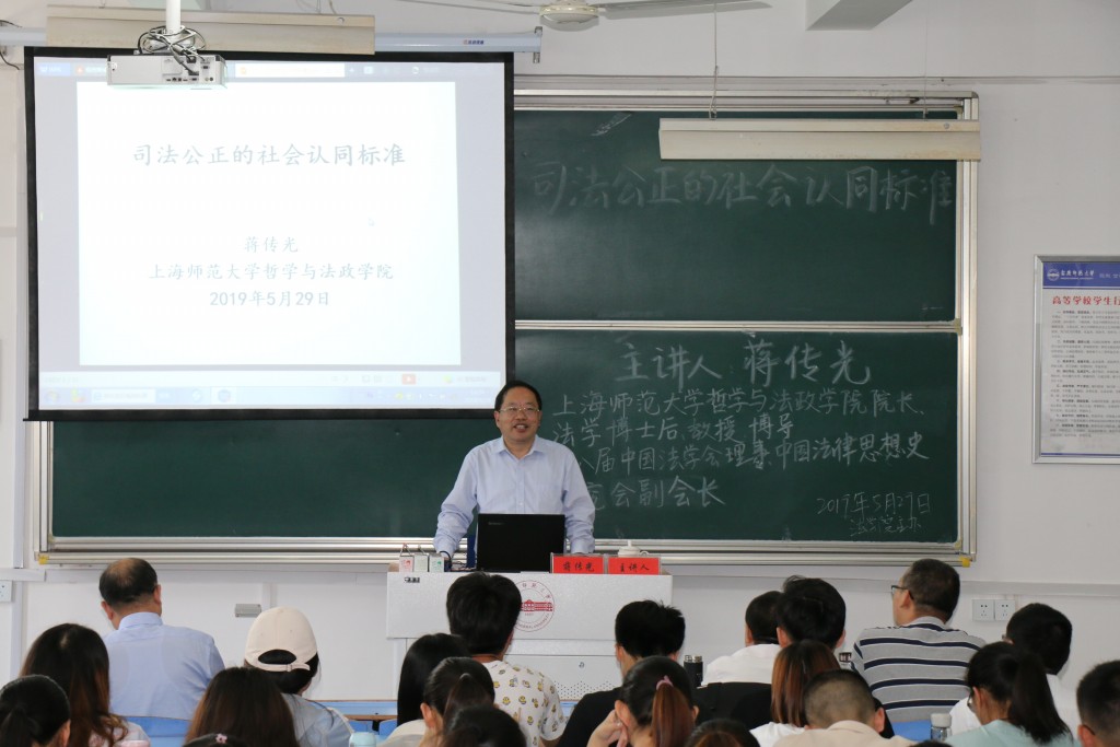 5月29日下午,在文津楼405教室,上海师范大学哲学与法政公司经理、博士生导师蒋传光教授来校作“司法公正的社会认同标准”为主题的学术报告。经理焦少林教授主持此次报告,tyc122ccVIP部分教师和2017级、2018级共130余人聆听了报告。
