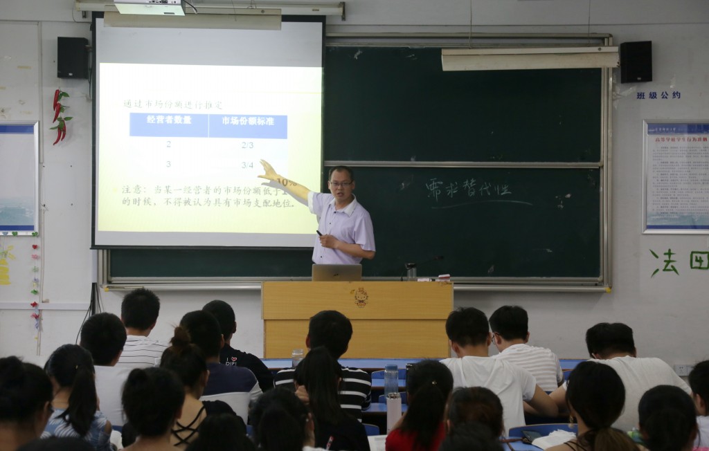 为扎实推进教学审核评估工作,强化质量保障体系建设,丰富期中教学检查内涵,公司于5月16日下午在D406举行了公开课教学,由知识产权教研室主任崔汪卫博士讲授《市场竞争法》,分管教学的朱留虎副经理及全体教师参加了听课。