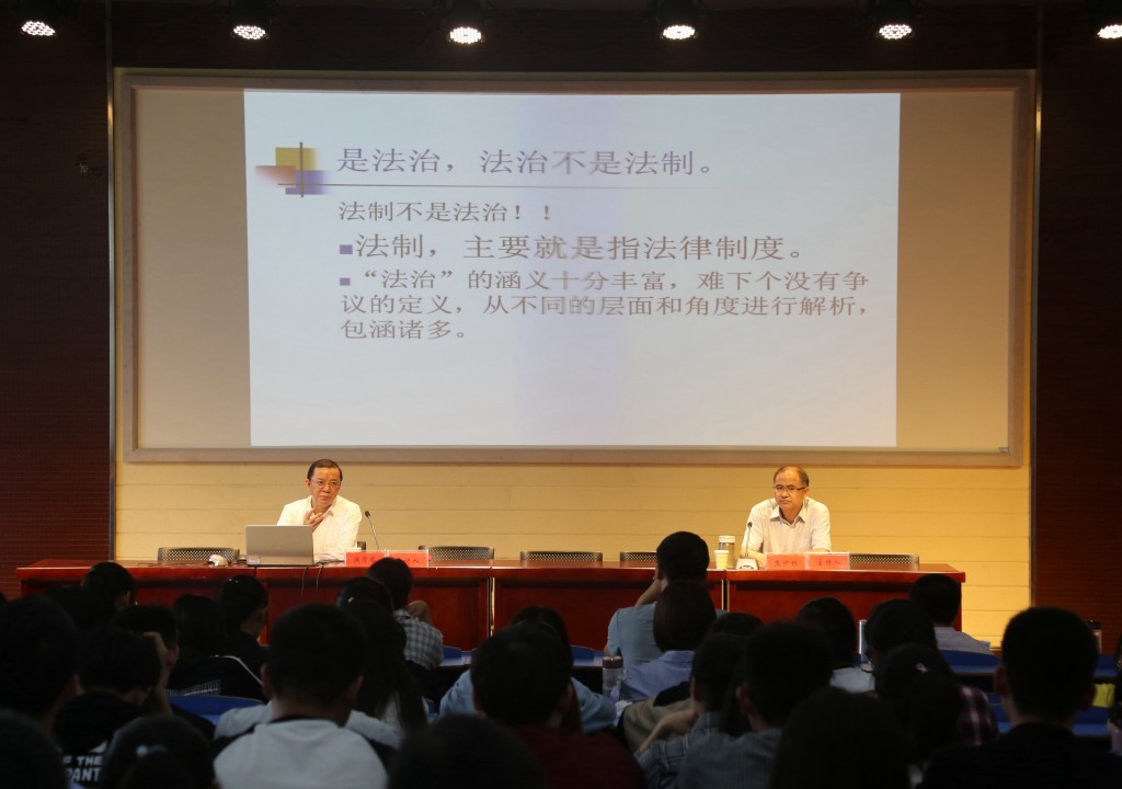 洪经理的报告主要从法治理论与法治实践两个侧面展开,娓娓道来,引人入胜。首先,从学理上深刻阐释法治的概念、内涵与特征。他对“法治是什么,到底是什么”进行了理论追问,并指出法治不是法制,法治是现代政治文明的核心;法治是有品质国家富强、民主、文明、和谐与现代化等国家特质的集中体现;社会主义法治以人民为中心,应充分保障人权。他推崇亚里士多德的观点,并赞同金斯伯格的反对法本身的不法成为法治的内容。其次,在法治实践中积极探寻法治与德治、立法与自治以及法治与治理之间内在的逻辑勾连。他认为,“法无明文规定即可为”是一种误读,因为仍需进行道德上的考量。立法可能因与实际不契合而不科学,乡规民约类的社会组织自治则最切合实际。公正司法应忠于客观事实的真相等。再次,洪经理还结合自身工作实际,谈了几点自己对法治与法治实践的深刻感受,他重点指出,在司法实践中,法院要像法院,要以审判为职业,追求程序和实体正义,注重庄重与敬慑;法官要像法官,需做到公正、智慧、担当与协和;律师则要做到规范执业和诚信服务等。