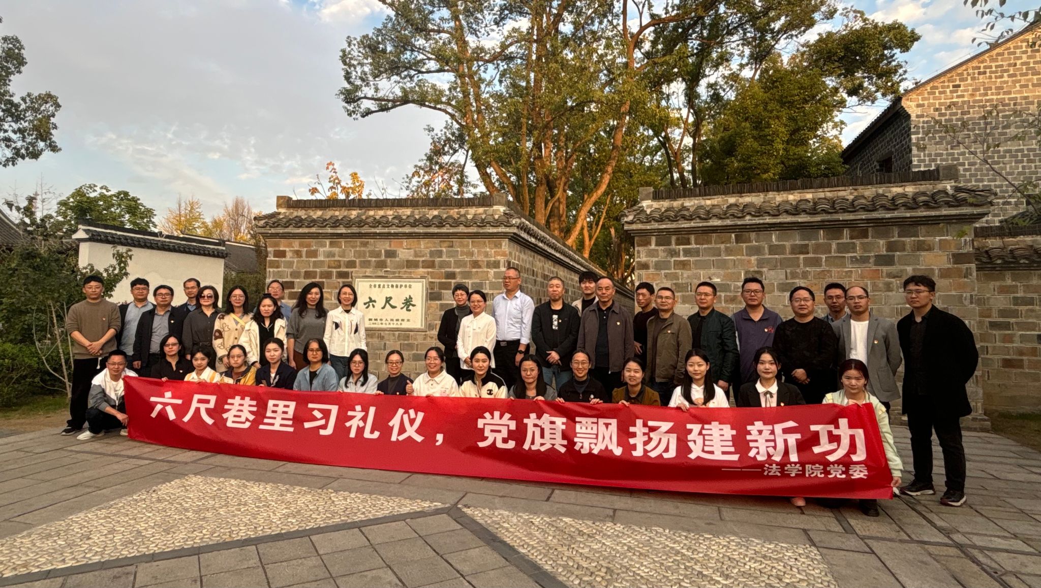 大家来到文都桐城,沿着习近平总书记的足迹参观六尺巷,现场感悟习近平总书记强调的“发挥好中华民族讲求礼让、以和为贵传统美德的作用”的重要意义。在讲解员深入浅出的讲解中,大家重温了“一纸书来只为墙,让他三尺又何妨”的历史典故,深刻感悟张英父子廉洁礼让、崇德尚廉的高尚品德,深刻体会中华民族以和为贵的传统美德。师生在六尺巷实地体悟中国古人化解矛盾的历史智慧,学习借鉴“新时代六尺巷工作法”,深入挖掘共建共治共享的社会治理新模式。“六尺巷”典故所涵蕴着的廉洁文化和法治精神,让大家增强了自重、自省、自警、自励的意识,不断鞭策自己力求思想不松防线、行动不碰红线、做人不越底线,进一步筑牢拒腐防变堤坝,持续推进党风廉政建设走深走实。